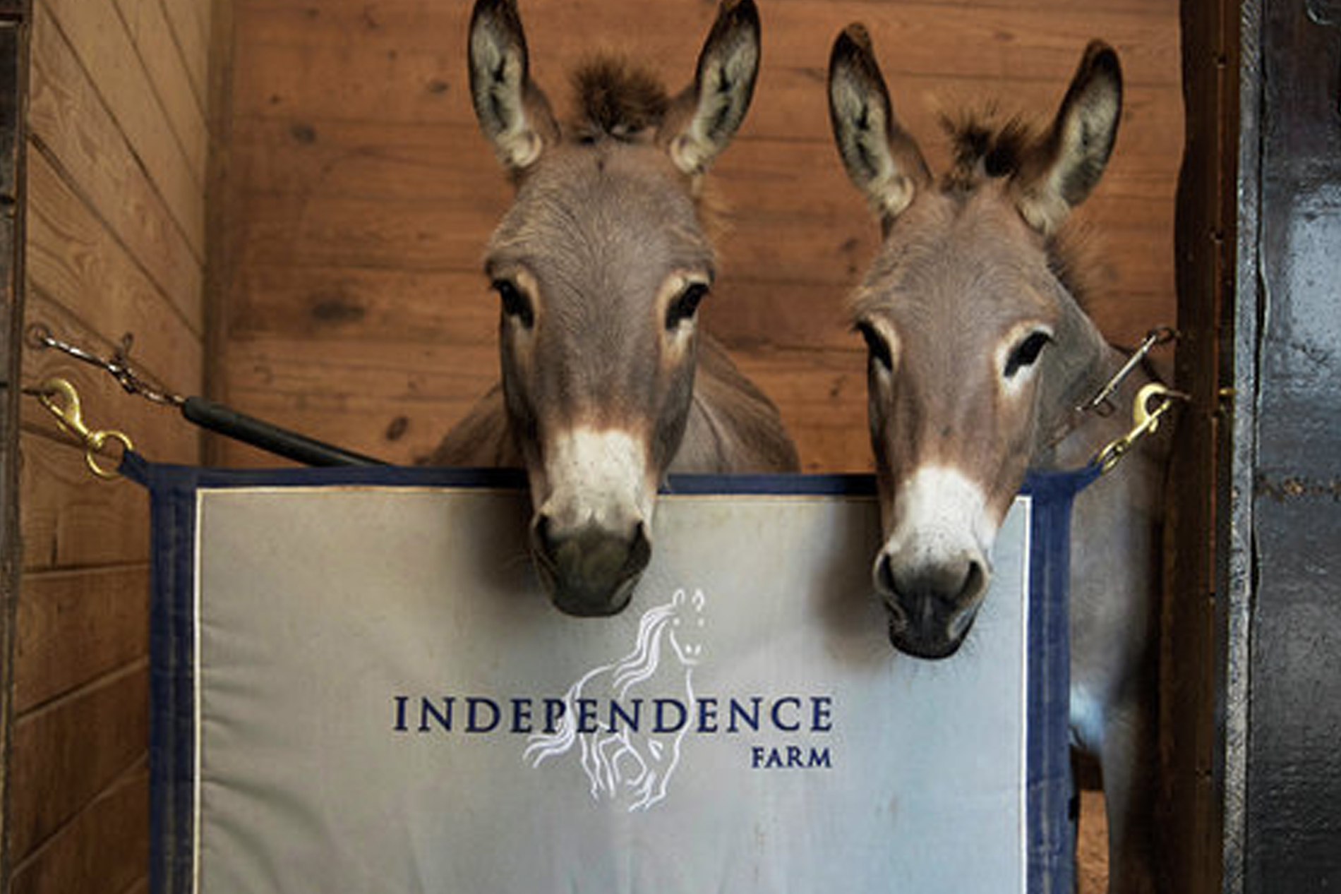 They make adults and kids smile on a daily basis and they enjoy all the stares they get from all the horses. During off hours, the kids at Independence Farm enjoy taking the donkeys in the ring and jumping them over poles and flower boxes. The kids also give them baths and hand walk them until the are dry.