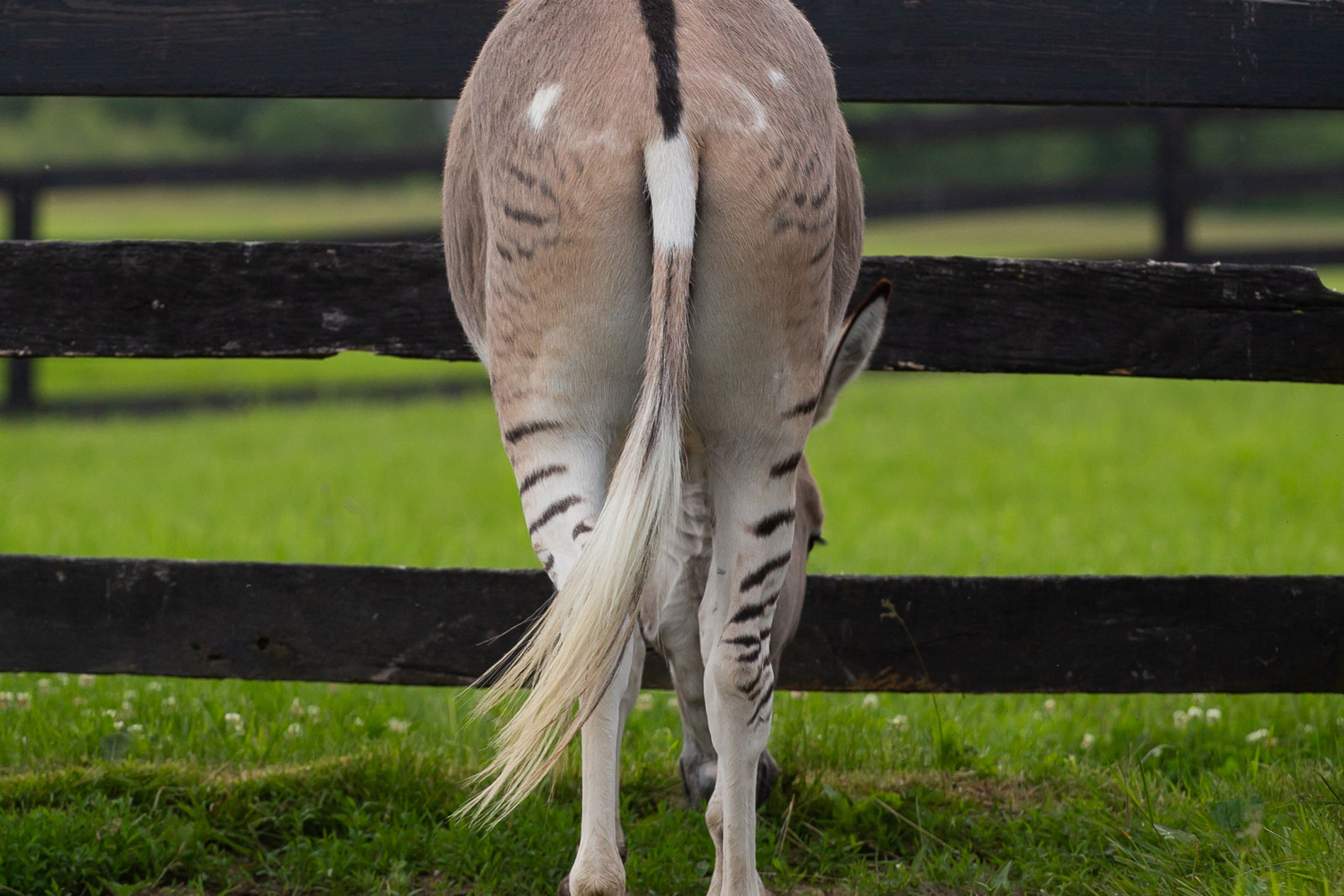 She is half zebra/half donkey and was bred at Rarity Acres in Michigan. We are so happy she is here and look forward to working with her. Petie and Pennie are thrilled to have a new friend.